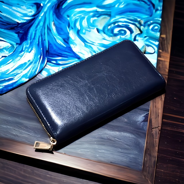 <オイル加工 ダークブルー> 長財布 牛床革 ラウンドファスナー メンズ レディース 小銭入れ カードケース プレゼント