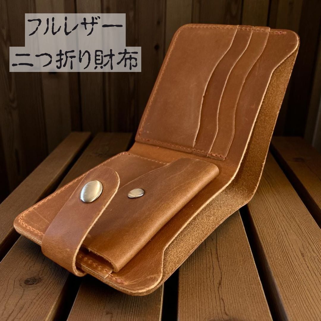 フルレザー 二つ折り財布 本革 茶 メンズ レディース 小銭入れ カードケース 牛革 プレゼント