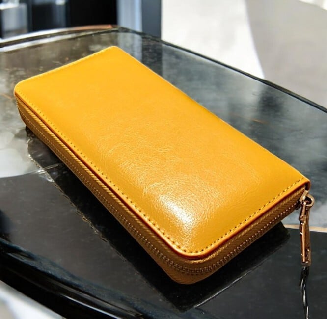 <オイル加工 光沢感のあるイエロー> 牛床革 黄色 長財布 メンズ レディース 小銭入れ カードケース 金運アップ プレゼント