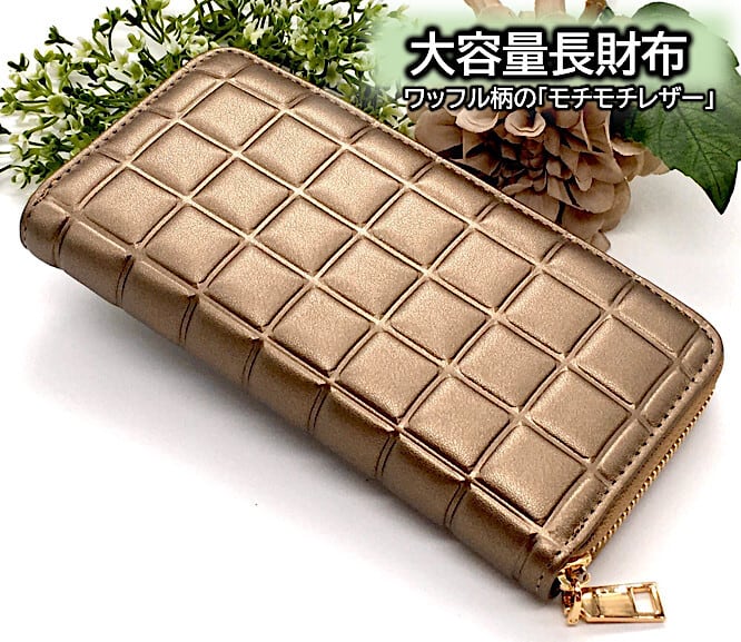 <通帳も入る大容量長財布☆ ワッフルブロンズ色> 長財布 メンズ レディース じゃばら 小銭入れ カードケース コスパ最強 プレゼント